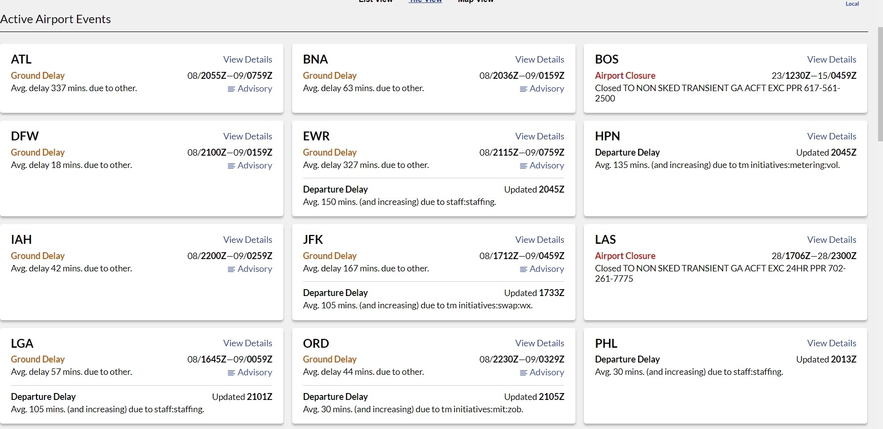 紐約地區(qū)三大機場8日均因人手短缺出現(xiàn)航班延誤。截至8日16時,紐瓦克自由國際機場(EWR)入港航班平均延誤超過327分鐘,出港延誤約150分鐘且預計將進一步增加;拉瓜迪亞機場(LGA)入港延誤近一小時,出港延誤約105分鐘并持續(xù)上升;肯尼迪國際機場(JFK)平均延誤167分鐘,并一度實施地面停飛令。與此同時,芝加哥、拉斯維加斯及奧斯汀等城市的多座機場亦因相同原因被下令暫時停飛。