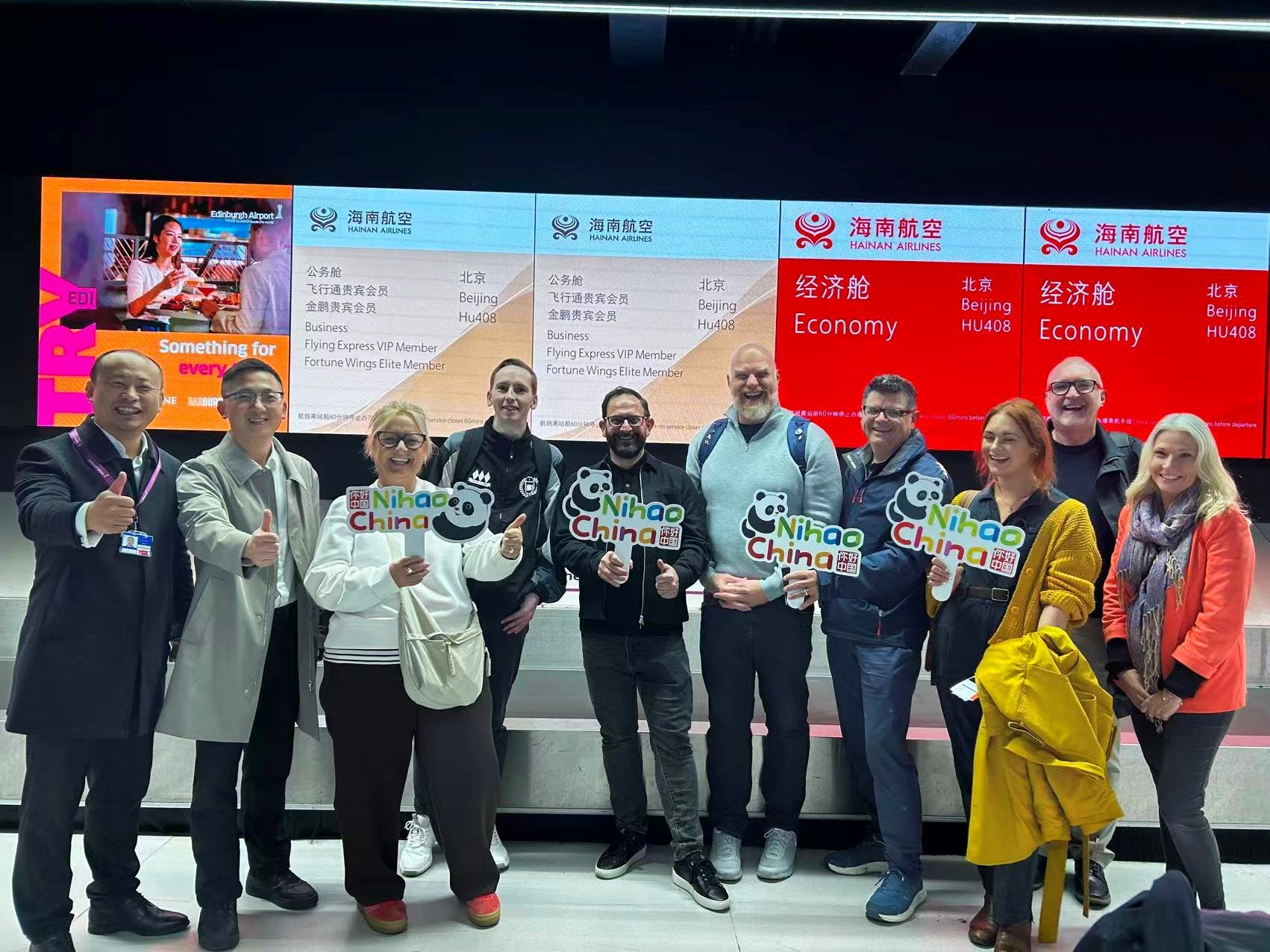 愛丁堡赴華旅游踩線團(tuán)搭乘海南航空前往中國(guó)。主辦方供圖