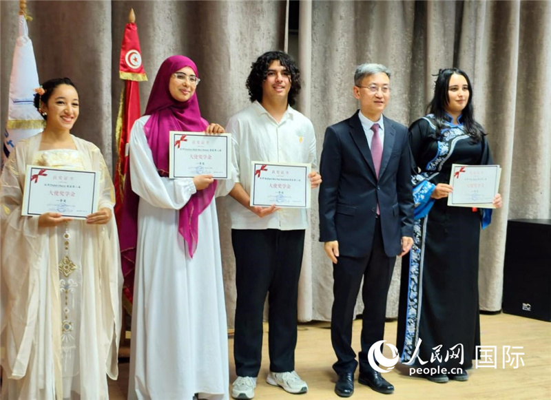 人民網(wǎng)迪拜11月14日電 (記者管克江)近日,中國(guó)駐突尼斯大使館第二屆“大使獎(jiǎng)學(xué)金”頒獎(jiǎng)儀式在迦太基大學(xué)孔子學(xué)院舉行。39位突尼斯高中生獲得各等級(jí)大使獎(jiǎng)學(xué)金,另有3位高中老師獲得優(yōu)秀教師獎(jiǎng)、1位老師獲得特殊貢獻(xiàn)獎(jiǎng)。突尼斯5省18所開(kāi)設(shè)中文課的高中近百位師生出席。
