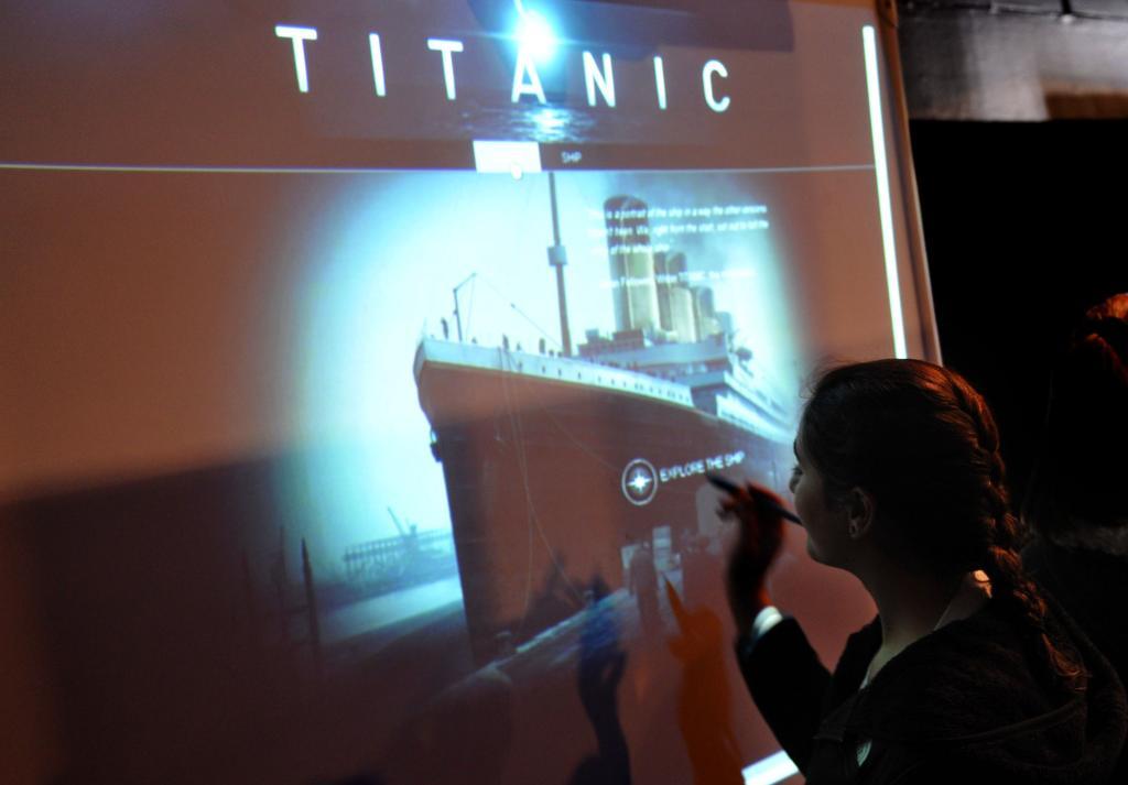 2012年4月11日,在美國紐約曼哈頓的南衡海港博物館,游客在泰坦尼克號失事100周年紀(jì)念展上參觀。新華社記者王雷攝
