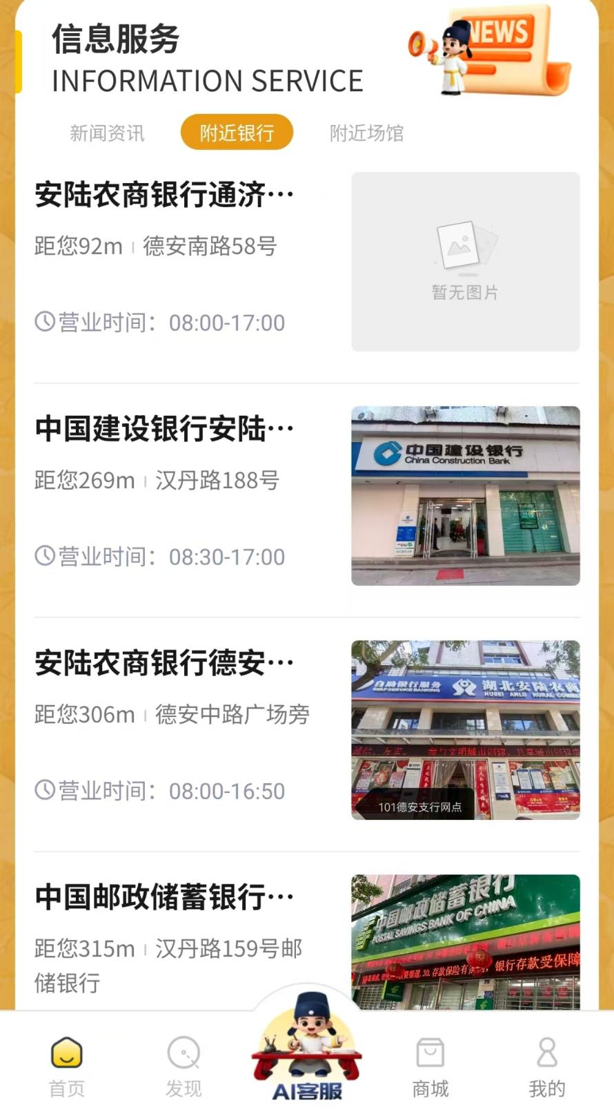 作為安陸市重點打造的智慧文旅服務載體,平臺依托現(xiàn)代信息技術,將全市各類支付服務網(wǎng)點信息全面整合,形成“支付網(wǎng)點一張圖”數(shù)字化服務矩陣。游客只需打開“一碼游安陸”微信小程序,在首頁的信息服務板塊即可實時查看周邊銀行網(wǎng)點、助農(nóng)取款點等位置分布、服務范圍及運營狀態(tài),通過一鍵導航功能快速抵達,輕松滿足現(xiàn)金取款、掃碼支付、業(yè)務辦理等各類需求,徹底告別“找網(wǎng)點難、支付不便”的出行困擾。