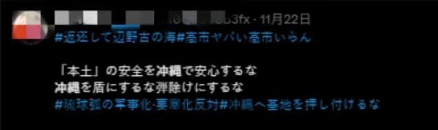 日本網(wǎng)友熱評“不需要高市早苗”“勿將沖繩當作盾牌”,嚴正拒絕自己的家園成為潛在沖突的“盾牌”與“炮灰”,并強烈譴責日本政府“持續(xù)將美軍基地強加于沖繩的行徑”。