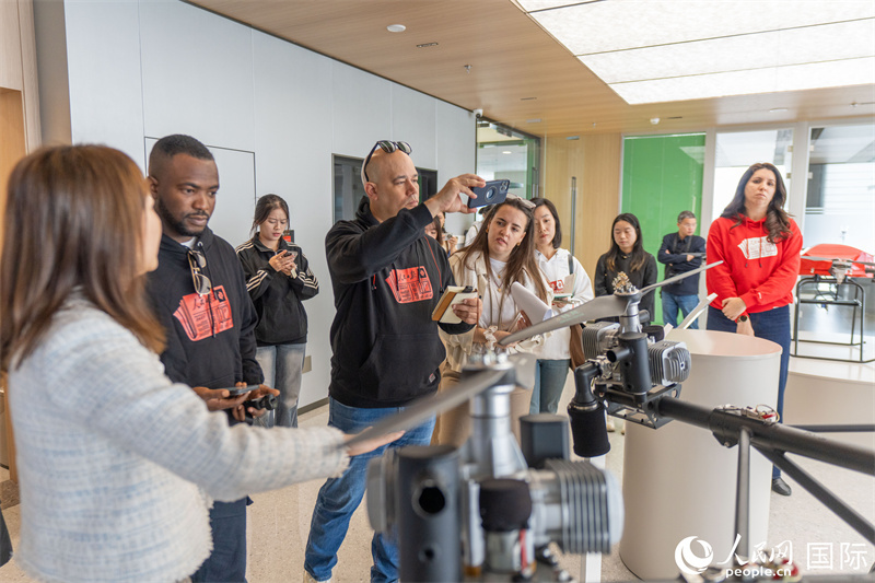 記者團(tuán)在前海5號樓參觀科技創(chuàng)新產(chǎn)品的展示并聽取講解。人民網(wǎng)記者 許崢攝