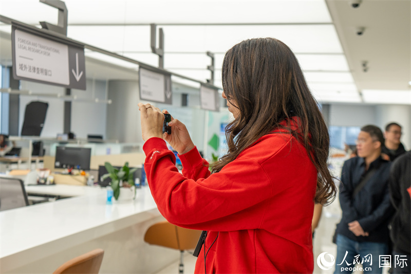 記者團(tuán)在深圳出海e站通參觀采訪。人民網(wǎng)記者 許崢攝