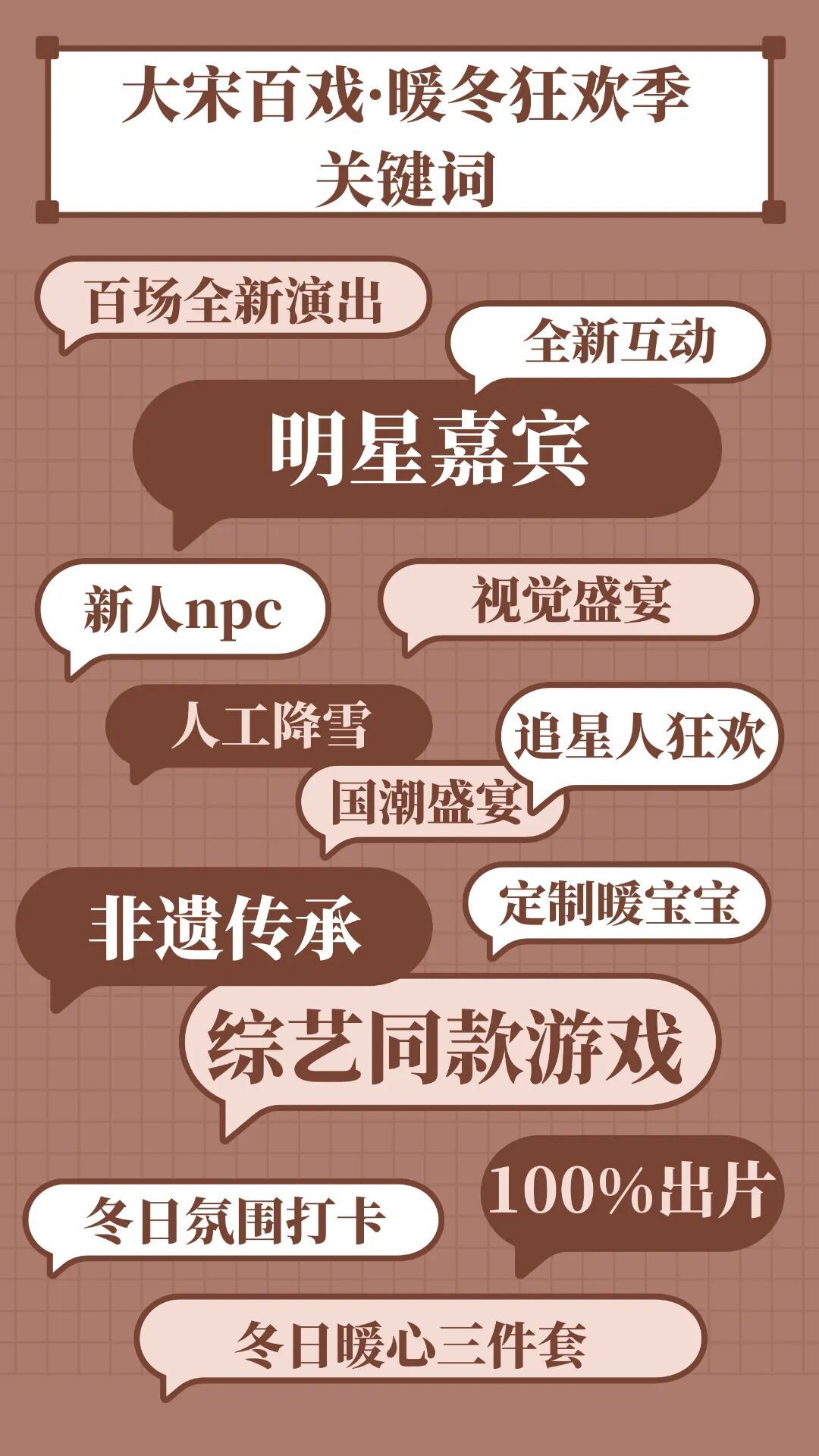 購(gòu)《大宋·東京夢(mèng)華》演出票,三天免費(fèi)無(wú)限次游園,大宋百戲·暖冬狂歡季,免費(fèi)參與!問(wèn)題來(lái)了,全新主題活動(dòng),大宋百戲·暖冬狂歡季會(huì)有什么?