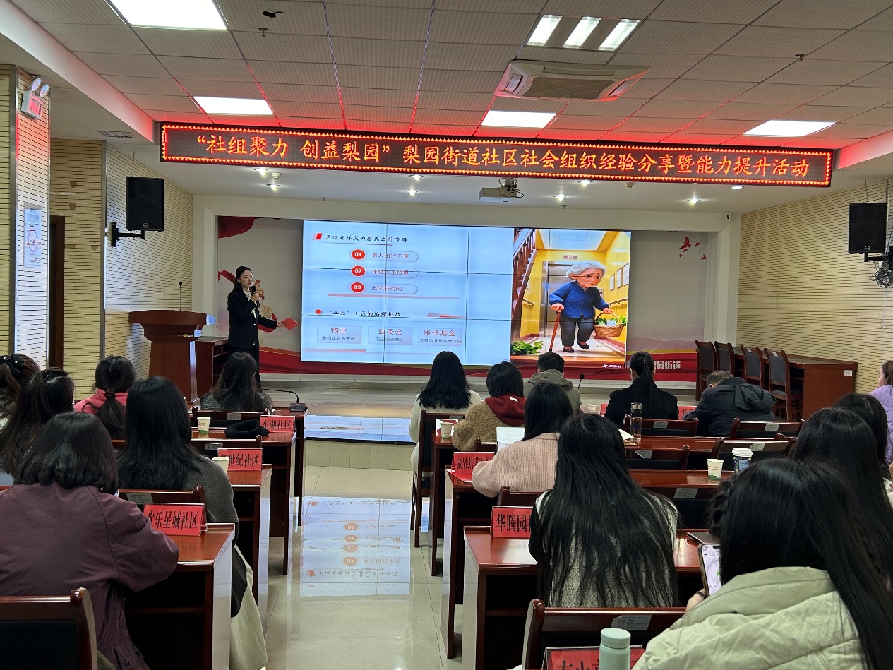 隨后,活動進入了最核心的案例匯報環(huán)節(jié)。在近兩個小時的時間里,來自梨園街道10個社區(qū)的優(yōu)秀社會組織代表輪番登臺,分享了他們在養(yǎng)老助老、婦女兒童關(guān)愛、文化體育及社區(qū)教育等領(lǐng)域的探索與實踐。