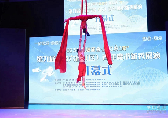 賽后,黃岡市(浠水)雜技團(tuán)表演了《綢吊》《轉(zhuǎn)碟》等4個雜技節(jié)目,現(xiàn)場觀眾、魔術(shù)表演者和專家評審團(tuán)紛紛為演員們精湛的演技鼓掌點(diǎn)贊。開幕式通過線上平臺進(jìn)行了全程直播,觀看量累計超10萬人次。