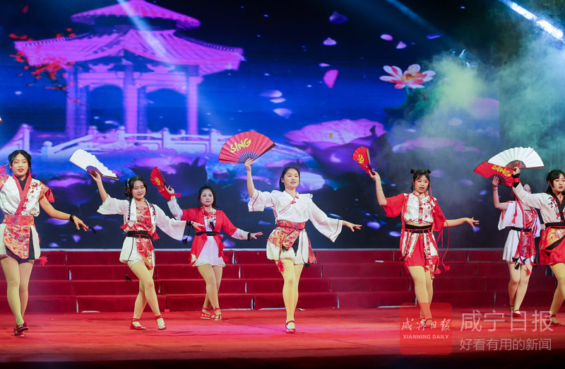 元月3日晚,咸寧高中舉行主題為“永遠(yuǎn)跟黨走,共筑中國(guó)夢(mèng)”2019年新年晚會(huì),歌舞、小品、詩朗誦等17個(gè)節(jié)目均由該校師生自編自演,展示了咸高對(duì)美好未來的向往和積極進(jìn)取的精神面貌。圖為咸高學(xué)生正在表演舞蹈《寄明月》。