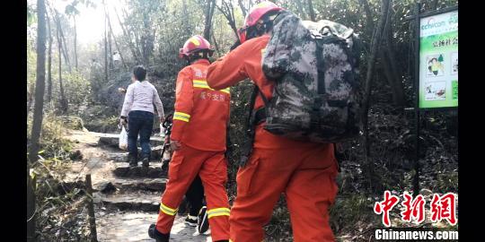 消防員帶上救援工具,徒步半個(gè)多小時(shí)趕赴事發(fā)現(xiàn)場開展救援 朱燕林 攝