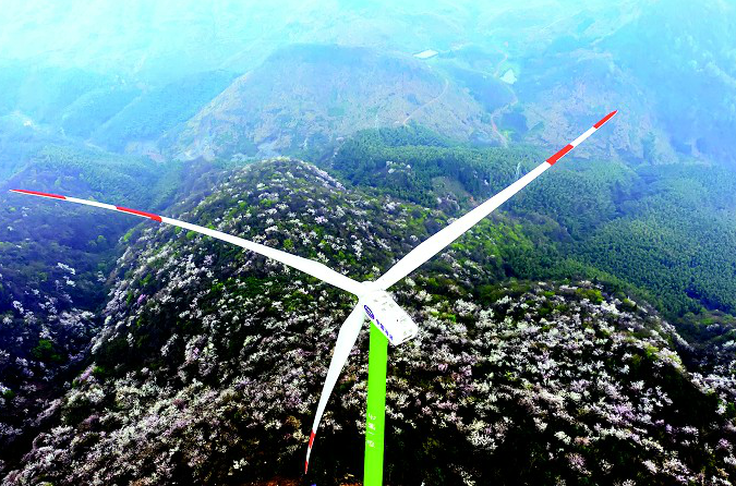 3月30日,鳥(niǎo)瞰咸寧大幕山,一臺(tái)臺(tái)發(fā)電風(fēng)機(jī)如鳥(niǎo)兒展翅,“徜徉”在漫山櫻花花海中。大幕山風(fēng)力發(fā)電場(chǎng)由中廣核集團(tuán)投資5.5億元建設(shè),計(jì)劃安裝29臺(tái)風(fēng)力發(fā)電機(jī)組,總裝機(jī)規(guī)模63.8兆瓦,年發(fā)電量約1.1億千瓦時(shí)。目前已安裝風(fēng)機(jī)16臺(tái),預(yù)計(jì)5月底完工、并網(wǎng)發(fā)電。
