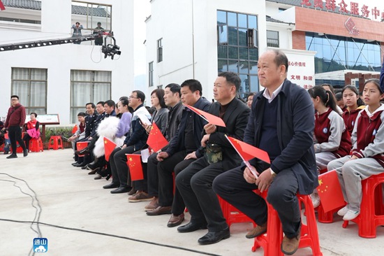 云上通山訊(通訊員 鄧文義 鄧娜)暖風(fēng)和煦,遍地芬芳,最美人間四月天。4月11日,由省文化和旅游廳主辦,省文化活動(dòng)策劃中心、咸寧市文化和旅游局共同承辦的“荊楚‘紅色文藝輕騎兵’文化扶貧”大型文藝演出走進(jìn)板橋村,給村民奉上了一頓豐盛的文化大餐。省紀(jì)委派駐省文化和旅游廳紀(jì)檢監(jiān)察組組長(zhǎng)、黨組成員陳鍇,市委副秘書長(zhǎng)、省紀(jì)委駐通山工作隊(duì)隊(duì)長(zhǎng)、副縣長(zhǎng)胡長(zhǎng)學(xué),縣委常委、紀(jì)委書記、監(jiān)委主任劉海元,縣委常委、宣傳部長(zhǎng)吳柏林觀看演出。