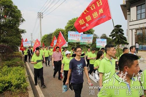 赤壁市"萬步有約"活動正式啟動后,參賽隊員在健走教練的帶領下,沿著河北大道進行了約2公里長的健康步行。