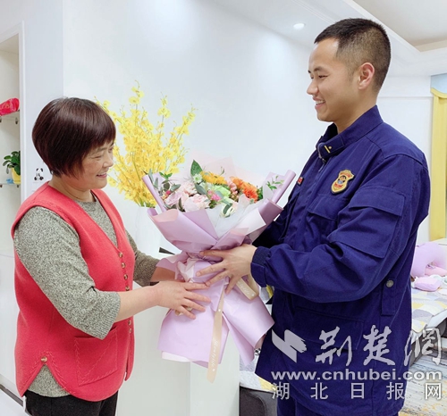 “媽媽,這些年您辛苦了,感謝您的養(yǎng)育、教育之恩,快到母親節(jié)了,在這個特殊的日子里,今年能親手送上一束鮮花您,希望您天天開心貌美如花……”母親節(jié)即將到來之際,咸寧特勤中隊副中隊長張衡出差時利用午休時間回家送上一份母親節(jié)的禮物。