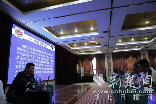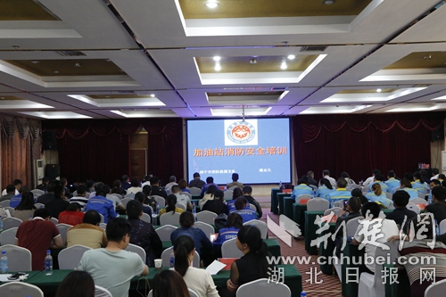 圖為全市加油站站長學(xué)習(xí)消防知識(shí)現(xiàn)場?!Ⅺ惸葦z