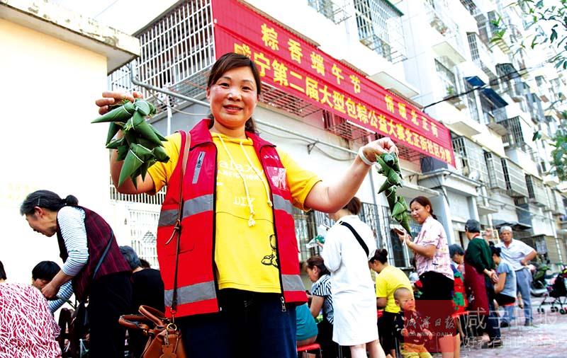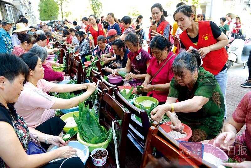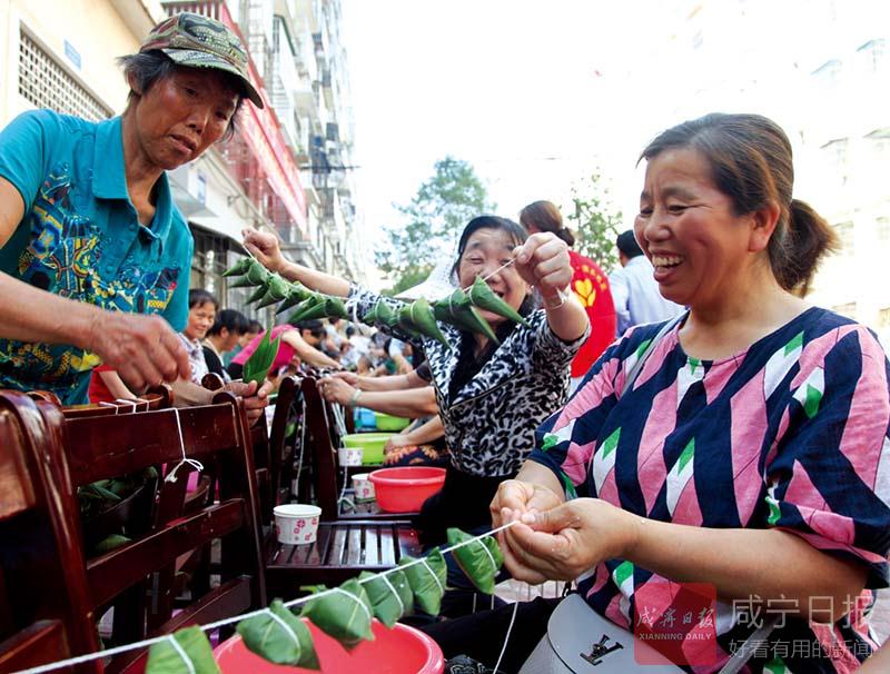 “瞧,這個(gè)粽子包得真好,不僅個(gè)頭飽滿,而且有棱有角”“蜜棗餡的粽子,還沒煮就已經(jīng)覺得很香了”……4號下午,在咸安區(qū)永安街道辦事處北正街社區(qū)幸福家園小區(qū),擠滿了社區(qū)居民,咸寧第二屆大型包粽子大賽北正街社區(qū)分賽正在進(jìn)行,居民們邊包粽子邊拉家常,好不熱鬧。