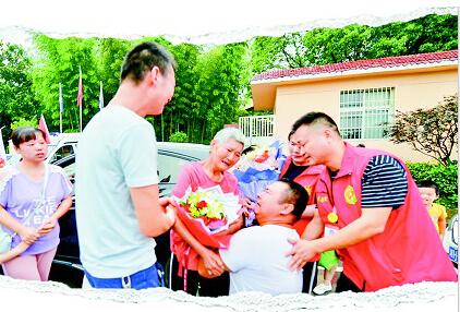 6月29日清晨7時(shí)許,一輛轎車駛出京港澳高速咸寧泉口收費(fèi)站,緩緩?fù)O?。在義工的攙扶下,一位白發(fā)婆婆顫顫巍巍地下車。37歲的余軍雙腿跪下,抱著她痛哭起來:“媽,你上哪兒去了,怎么才回來……”在場(chǎng)的親人和義工們無不潸然淚下。