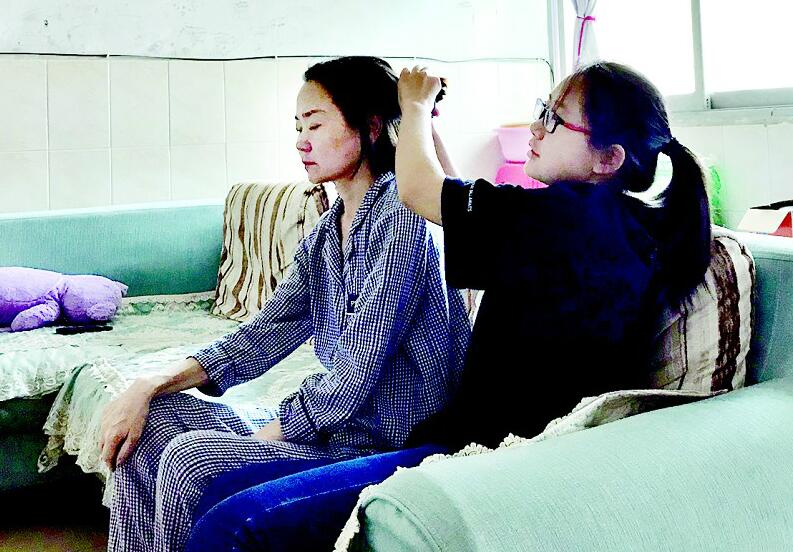 王渝玥原計(jì)劃跟同學(xué)開(kāi)暑期培訓(xùn)班,這樣可給媽媽掙點(diǎn)藥費(fèi),但沒(méi)想到媽媽病情惡化,她只好放棄開(kāi)班的想法全身心陪護(hù)母親。從沒(méi)干過(guò)家務(wù)的她,拿起了拖把拖地,學(xué)會(huì)了簡(jiǎn)單做飯,每天幫母親洗澡,扶著母親上下床、上衛(wèi)生間?!吧洗髮W(xué)的日子越來(lái)越近,我要好好陪媽媽?zhuān)褯](méi)法陪我一起去北京了……”王渝玥說(shuō)到這里淚如雨下。