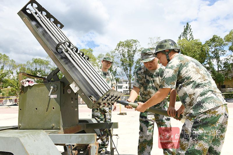 26日,在崇陽(yáng)縣港口鄉(xiāng)中學(xué),該縣氣象局工作人員正在此架設(shè)火箭炮,守候?qū)α髟茖?,抓住有利時(shí)機(jī)實(shí)施人工增雨抗旱作業(yè)。