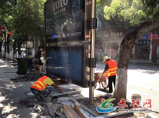 赤壁網(wǎng)消息(記者 聶愛陽)近日,在赤壁城區(qū)公交站臺、大眾餐館、家聯(lián)超市、老水利局、一橋……都能看到他們的身影——烈日下的一抹桔,用電鉆、角鋤、鐵鍬撬動原有的地面,用泥漿、錘頭、抹泥刀,鋪設上全新的大理石。