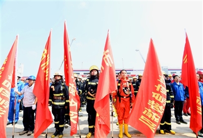 由200余人組成的民兵防火救災(zāi)應(yīng)急救援營,迅即分成偵查組、救生組、滅火組三個救援小組,配備應(yīng)急搶修車、舉高噴射車、水罐泡沫消防車、灑水車、發(fā)電車等20余輛救援車輛,進(jìn)入事發(fā)現(xiàn)場。
