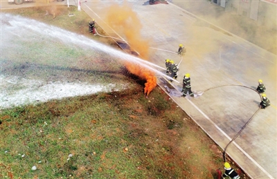 演練中,從發(fā)現(xiàn)火災(zāi)到火場救援,再到轉(zhuǎn)移被困人員,演練隊員沉著冷靜、技術(shù)過硬,整個過程分工明確、配合有力。經(jīng)過1個小時的“激戰(zhàn)”,各參演隊伍圓滿完成各項任務(wù)。