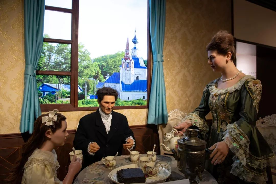 “俄羅斯人品嘗青磚茶”場(chǎng)景蠟像