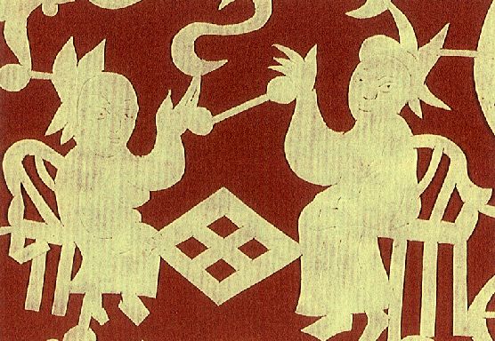 藍(lán)印花布遍及湖北全省,尤以天門(mén)藍(lán)印花布最負(fù)盛名。其特點(diǎn):1、藍(lán)與白的選擇,藍(lán)白兩色并非吉祥色,然而經(jīng)過(guò)藝人們的巧妙的藝術(shù)處理,使人感到清新明快;2、虛與實(shí)的結(jié)合:以點(diǎn)組成線,以線組成面,若合若離,似為一體,實(shí)又分離。