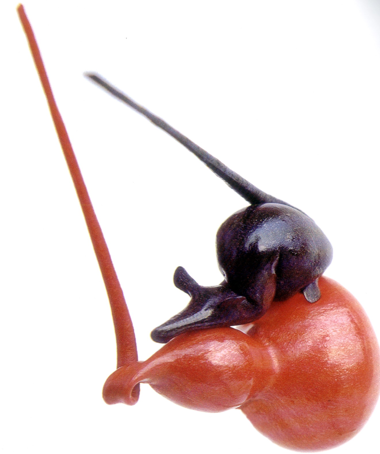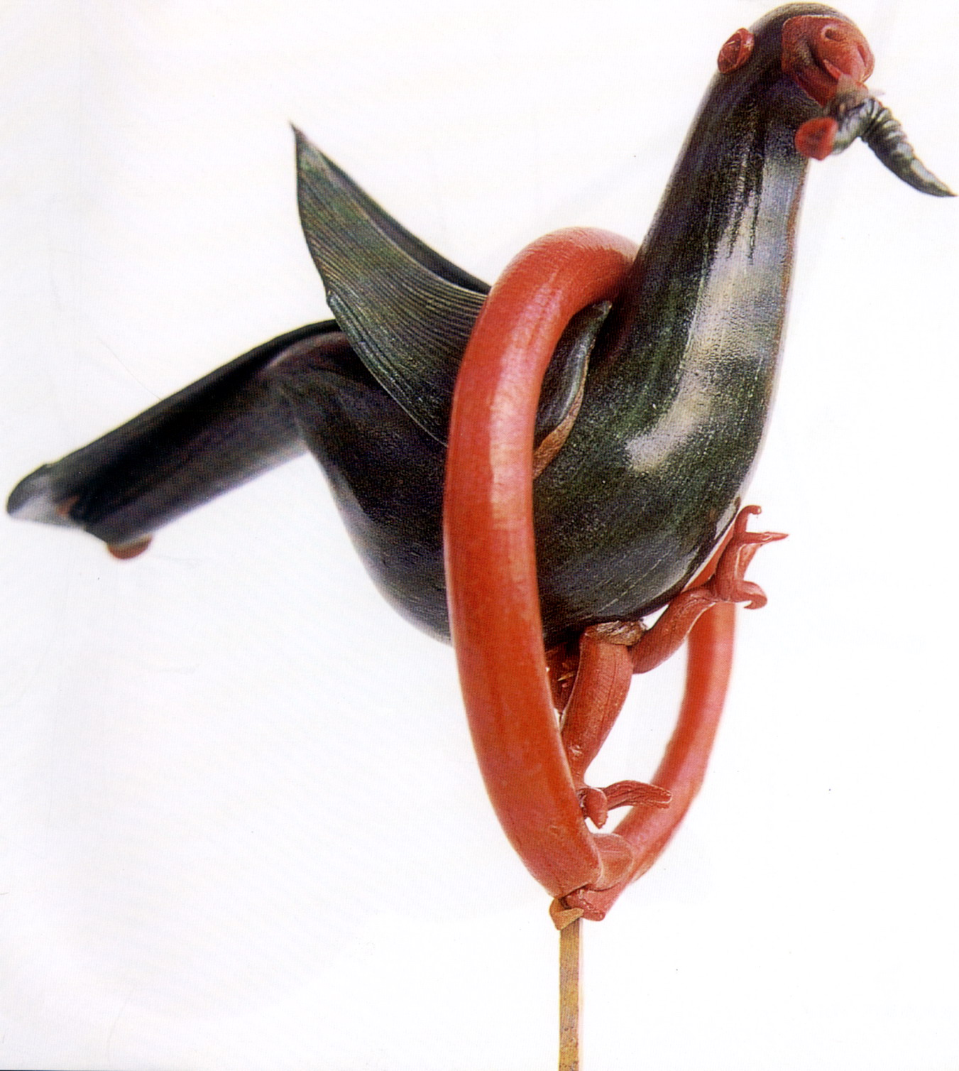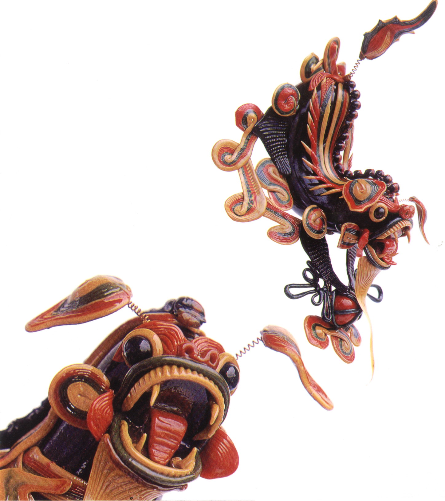 糖塑,俗稱吹糖,在湖北遍及全省,尤以天門最為突出。糖塑之所以贏得人們的喜愛,是因為它獨具特色:1、原料可塑性強:麥芽糖是糖塑的主要原料,加熱后變軟,比面塑更具可塑性,既可吹成薄而亮的各類造型,又可拉成粗細不同的糖絲。捏成不同形狀的配件,易粘且牢固;2、造型神形兼?zhèn)洌禾撬艿募妓囍饕Ψ蛟凇按怠鄙希粔K糖坯在藝人手中,邊吹邊捏,再通過搓、壓、挑、剪等手段,加上輔助的小鐵絲,少則幾分鐘,多則半小時,一件作品就完成了;3、色彩和諧醒目:麥芽糖加溫變軟加入紅、綠、黃、黑四種色素,根據(jù)需要又可調(diào)和成數(shù)十種復色,色彩響亮和諧;4、肌理變化豐富是糖塑獨具的特點:在糖塑中,附件變化萬千的肌理又與主體吹成光滑的表面形成鮮明的對比,顯得更加豐富耐看;5、“活”的部件是糖塑的又一特點:有的部件裝上自制的鋼絲彈簧,一經(jīng)拿在手中,部件都“活”起來了,更具生氣。
