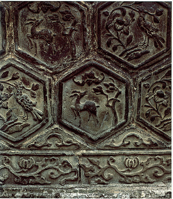 磚 雕 萬(wàn)壽塔座落在荊州市荊江大堤內(nèi)側(cè)古觀音磯上,是16世紀(jì)中葉,明藩第七代遼王朱憲節(jié)遵嫡母毛太妃之命為嘉靖帝祈壽而建。塔身內(nèi)外除玉雕佛龕坐佛外,還有兩千多塊磚雕。藝人以浮雕和線刻手法塑造了神態(tài)各異的佛像、動(dòng)物、花鳥(niǎo)圖案。磚雕兩側(cè),還以漢、滿、蒙、藏、回五種文字刻有捐資者姓名、捐資數(shù)目。